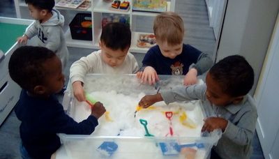Our program is built around the concept that children are born ready to learn with an innate natural curiosity. As caregivers, we strive to create a learning environment that is safe, secure, stimulating and encouraging. Our classrooms are used in a manner to stimulate the child and then give the teacher opportunity to be able to give the children a tailored experience. Young children’s developmental tasks are to build trust, learn social skills, begin mastery of academic skills and develop positive self-esteem. In order to best support these tasks, our program strives to provide developmentally appropriate activities, well trained and consistent staff, a safe and healthy learning environment, and continuity of care. The following principles serve as the foundation for our curriculum: •Children develop knowledge of their world through active interactions with caregivers, peers, and their environment. •Learning is sequential, building on prior understandings and experiences. •Learning proceeds at different rates in each area and each child; children will show a range of skills and understandings in any one area of development. •Learning in each area is interconnected. Young children learn best through experiences, which incorporate several areas of development. •Learning begins in the family, continues in early care and education settings, and depends on parent involvement and caregiver guidance. •All children have the potential to achieve and learn with appropriate supports and instruction.